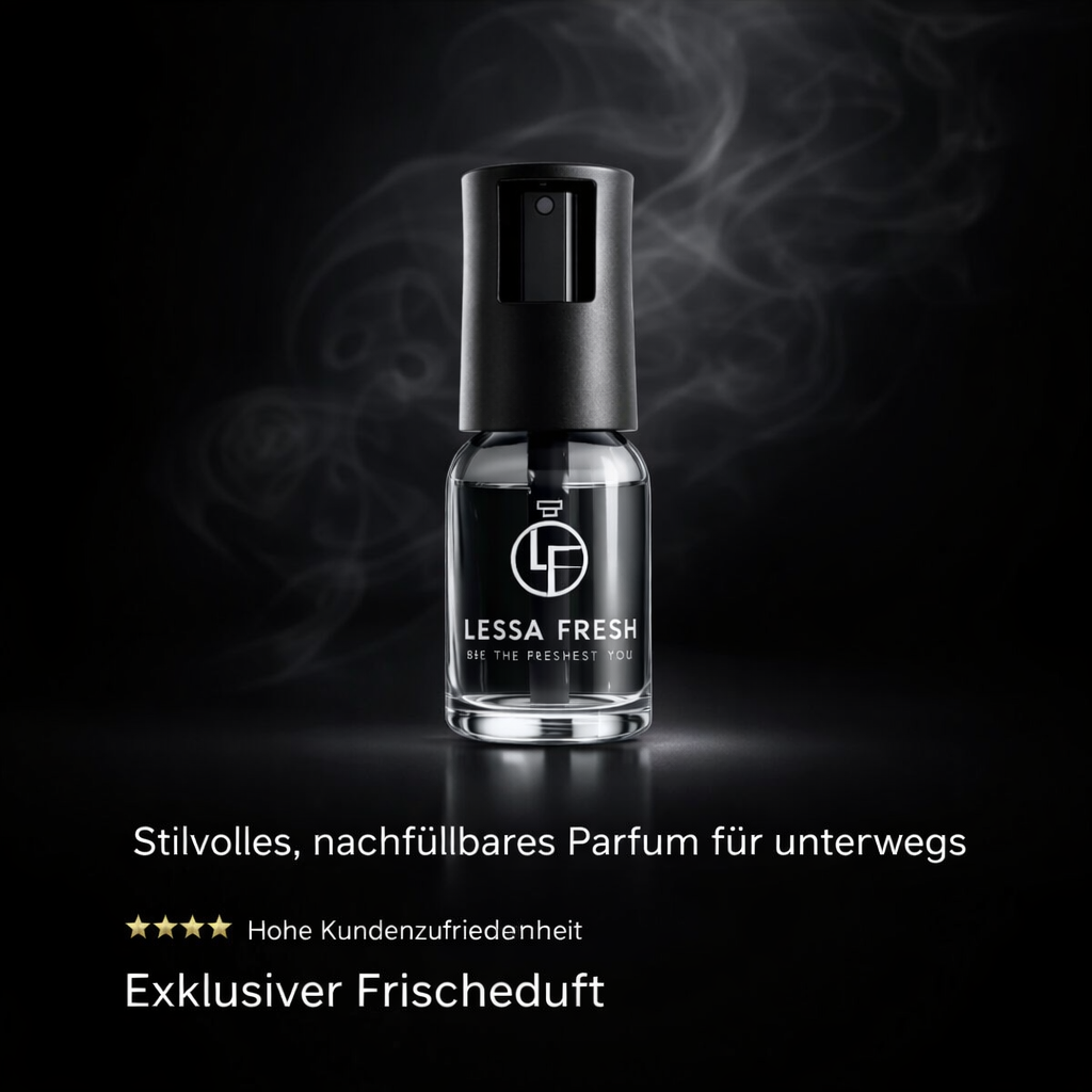 Jetzt entdeckenEntdecke mit Lessa Fresh eine außergewöhnliche Art, dein Fahrzeug neu zu erleben. Unser nachfüllbarer Lufterfrischer für dein Auto bringt nicht irgendeinen Duft – sondern deinen ganz persönlichen. Mit deinem Lieblingsparfüm, verwandelt Lessa Fresh dein Auto in einen stilvollen Rückzugsort voller Eleganz, Charakter und Sinnlichkeit.